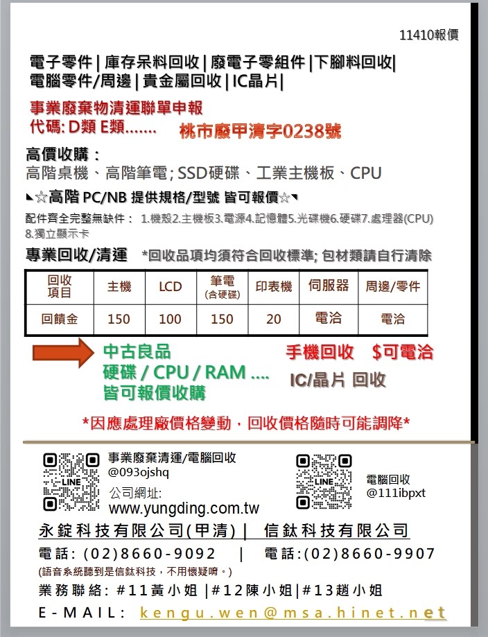 電腦回收、筆電回收、印表機回收、伺服器回收、液晶螢幕回收、貴金屬回收、